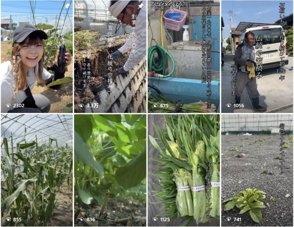 農業から想起されがちな、大変...という印象を払拭するような、農業の楽しい!やってみたい!と思えるような明るい投稿で訴求。