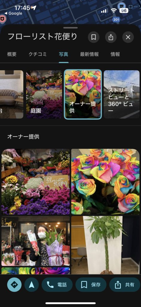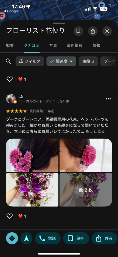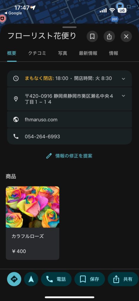 Googleマップから直接「ルート案内」や「電話をかける」ができるため、ユーザーが迷わず行動できます。検索から行動までの時間を短縮できるのは大きな強みです。