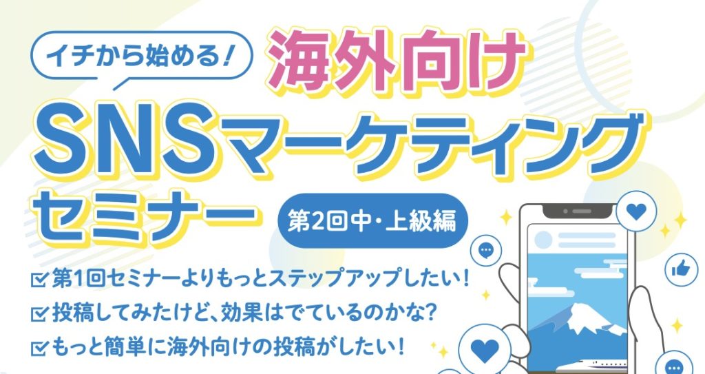 今回の中・上級編では、『「いいね」や「再生数」で終わらせないSNS活用』『ターゲットに届くSNS』をテーマに、結果の振り返り方・改善の考え方・次のアクションにつなげる方法や、国ごとに好まれる発信方法について学びます。