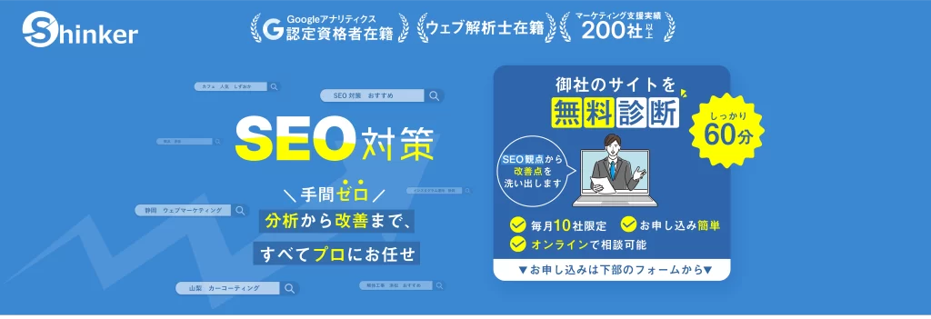 SEO対策は、検索エンジンで上位表示を目指し、Webサイトの構造やコンテンツを最適化する施策です。