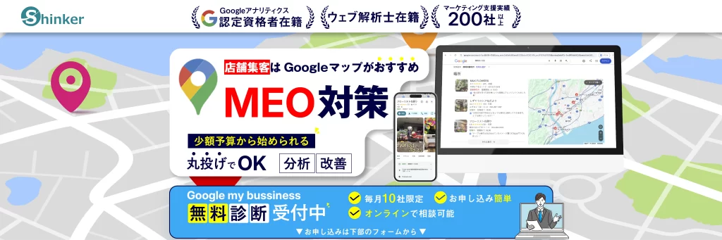 MEO(Map Engine Optimization)対策は、Googleマップやローカル検索での上位表示を支援する施策です。